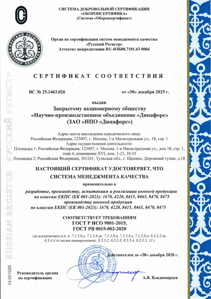 СМК предприятия соответствует всем обязательным требованиям ГОСТ Р ИСО 9001-2015, стандартов СРПП ВТ (ГОСТ РВ 0015-002-2020), МС ИСО 9001:2015.
